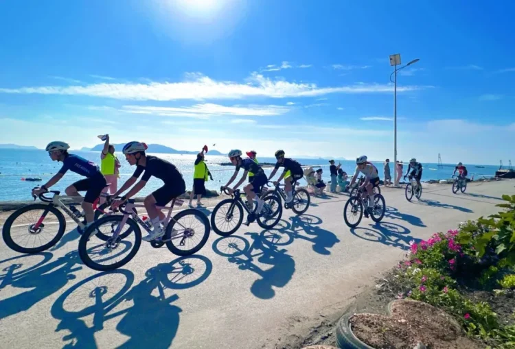 Riders competed in elite and recreational categories, with the elite group completing two laps totaling 62 kilometers and the recreational group riding one 31-kilometer lap. The course passed landmarks like Shicheng Park, Bird Island Nature Reserve, and the Oyster Square, featuring four sharp turns that tested technical skill.