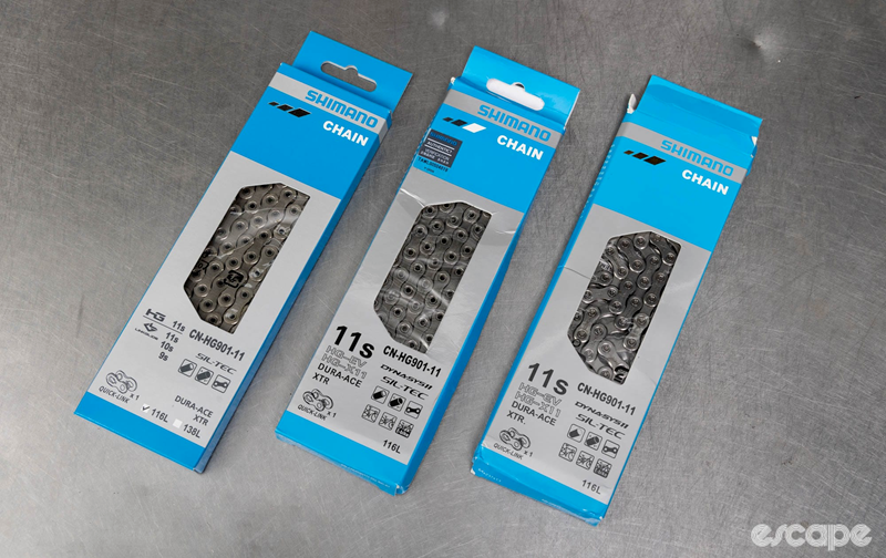 Early signs indicated the fakes. The AliExpress and eBay chains came in boxes with a glossier finish; one had split glue seams. A marker writes cleanly on genuine Shimano packaging but smudges on the fakes.