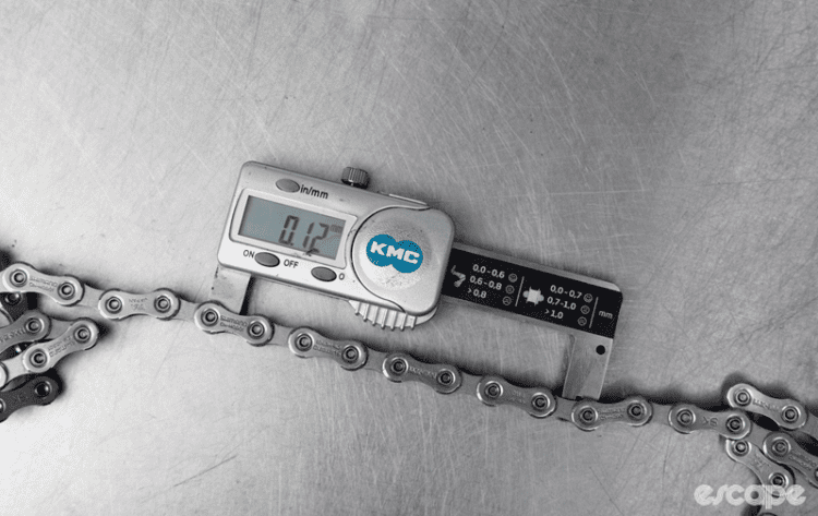 Differences appeared even before use. Chain wear occurs through use, but low-end chains often measure worn when new. Using a KMC digital chain checker, the genuine chain showed 0.00 mm wear—consistent for this model. The eBay chain measured 0.03 mm—close, but not perfect. The AliExpress chain was far worse at 0.12 mm wear (despite its larger rollers, which should have reduced the reading). That’s one-fifth of its total allowable wear—before it was even installed.